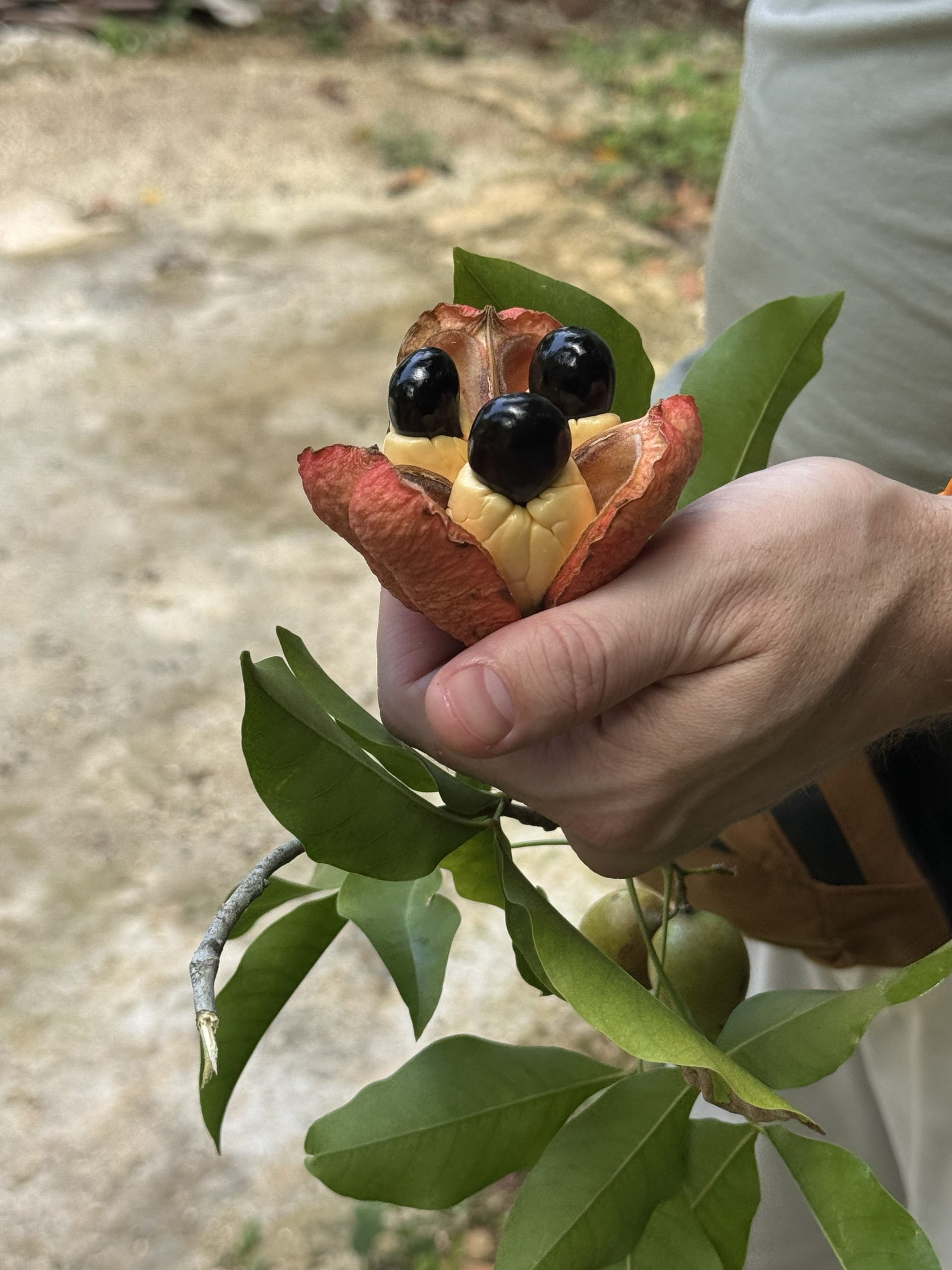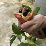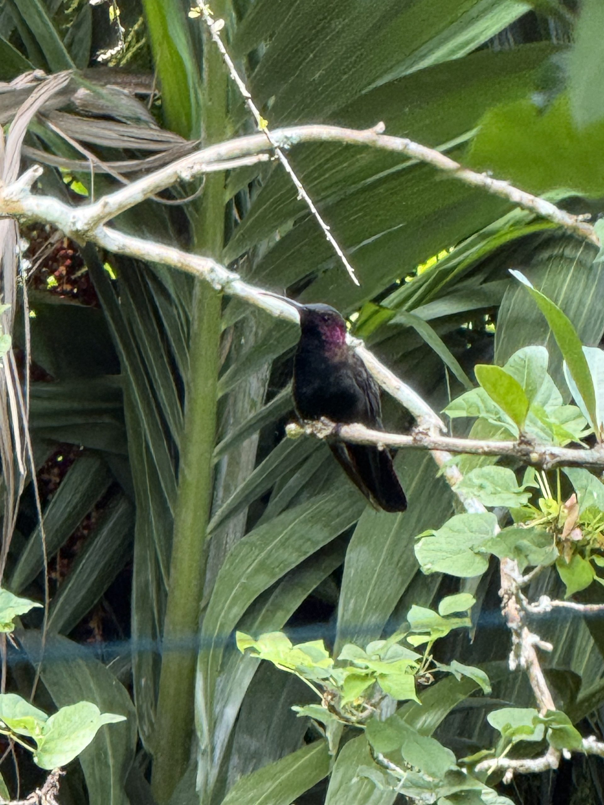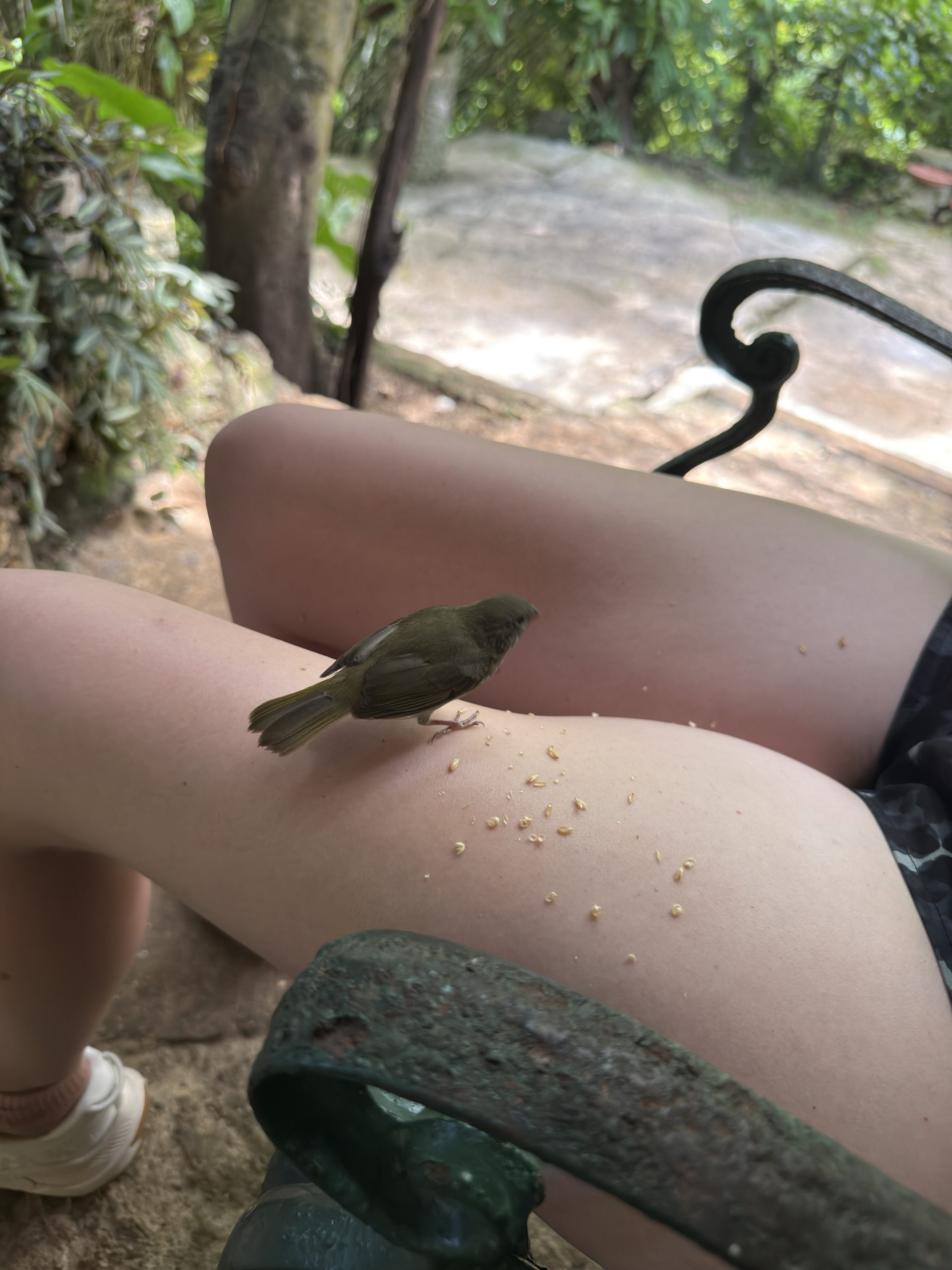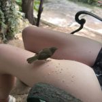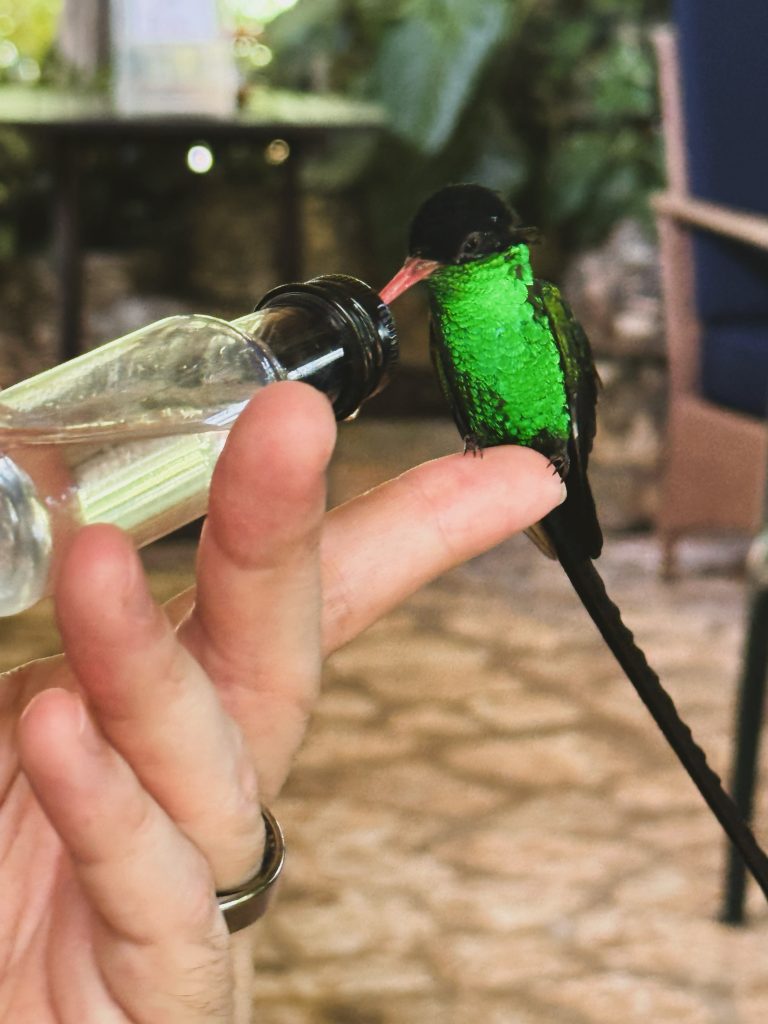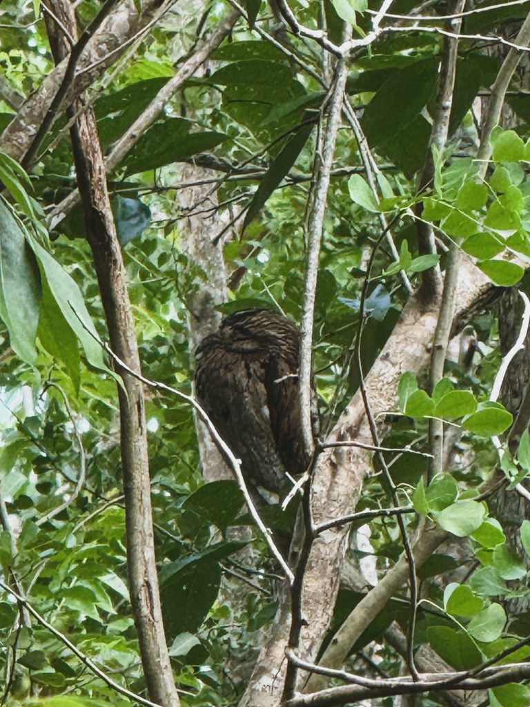Arriving at the sanctuary you are greated by friendly staff that explain the process for feeding the birds. Holding little mini bar style bottles of sugar water in a hand for the hummingbirds to come sip and perch from. The birds were lively and eager and it was really thrilling. Once we had fed birds for a period of time the employees offered to show us the flora and fauna of the sanctuary. That was a real treat. So many beautiful plants. Our host could see how enamored I was with the birds and asked if I had heard of potoos. Had I heard of the adorable muppet frog mouthed birds I spend time on Google staring at with joy? Yes, rings a bell. He said that he had seen a Potoo in the trees earlier that morning sleeping and he would show it to me. Well, he came through and I got a first hand sighting of a wild potoo. It was amazing.